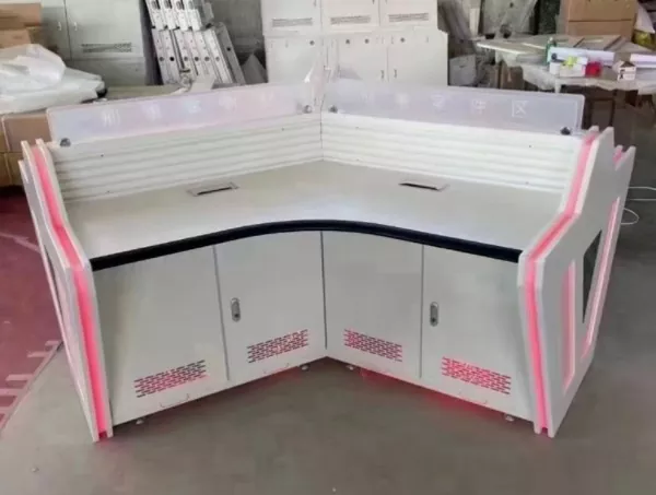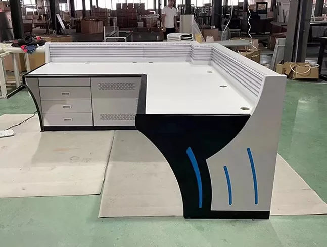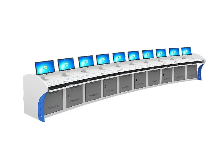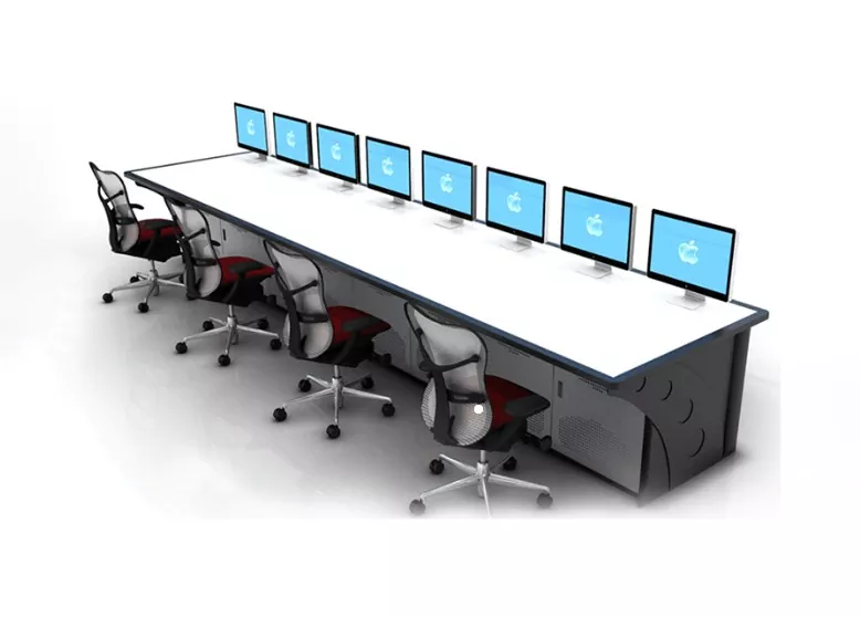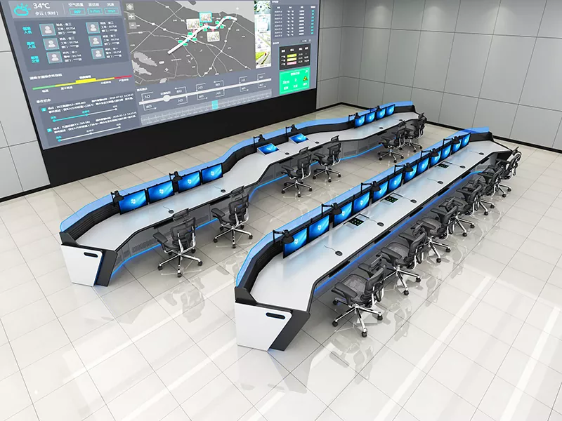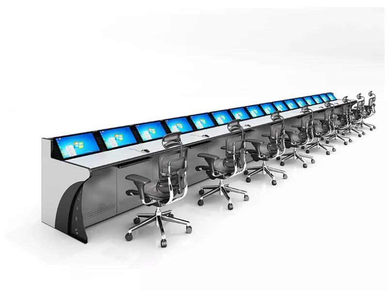 Модульна консоль моніторингу об’єднує приховані кабельні лотки та організовані канали проводки для зменшення безладу та спрощення обслуговування. Регульована робоча висота та зносостійкі поверхні робочого столу покращують комфорт оператора під час тривалих змін.