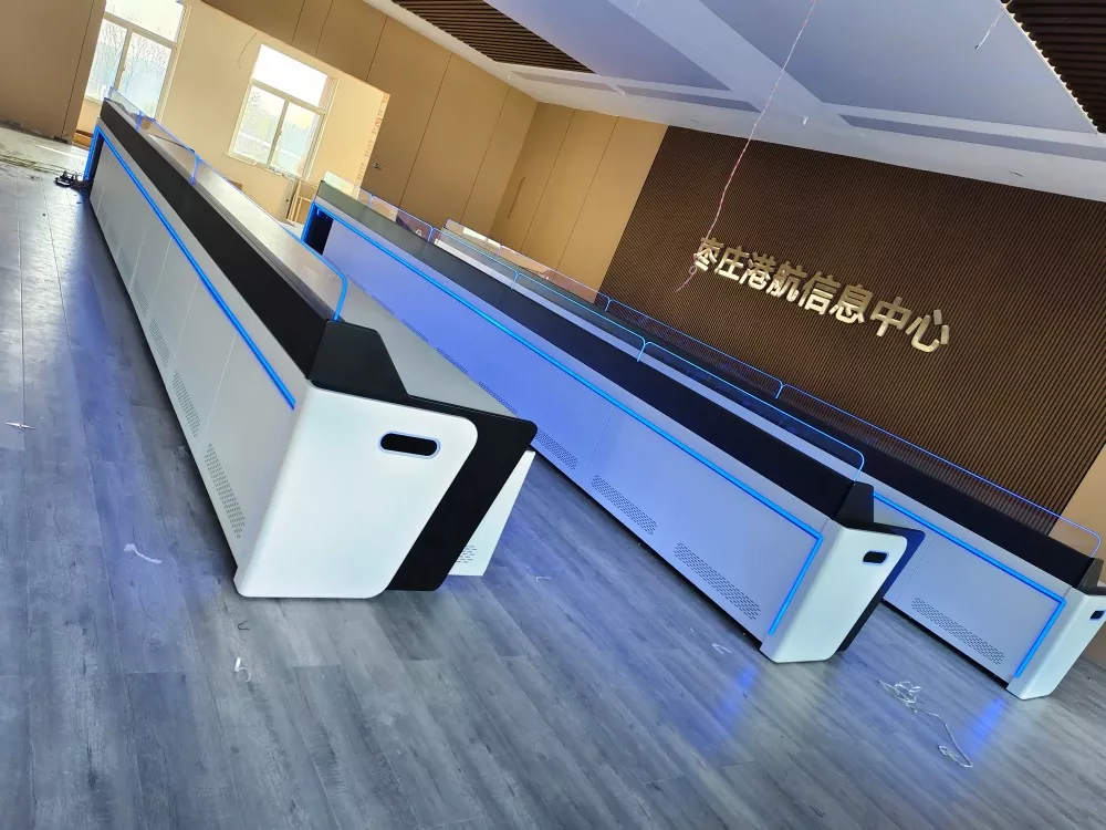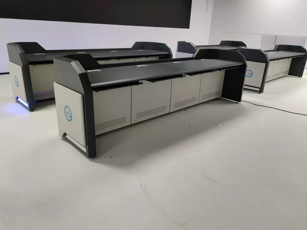 Продукт має модульну конструкцію з єдиним блоком як базовим блоком, який можна гнучко розширювати в довжину для адаптації до різних просторових планувань. Його чітка та проста пряма форма максимально ефективно використовує простір кімнати моніторингу, одночасно полегшуючи організоване розміщення кількох робочих станцій та співпрацю персоналу. Виготовлений із високоміцної холоднокатаної сталевої пластини за допомогою прецизійної обробки листового металу, поверхня оброблена електростатичним порошковим покриттям, що робить його стійким до іржі, зносостійким і простим у чищенні та обслуговуванні.